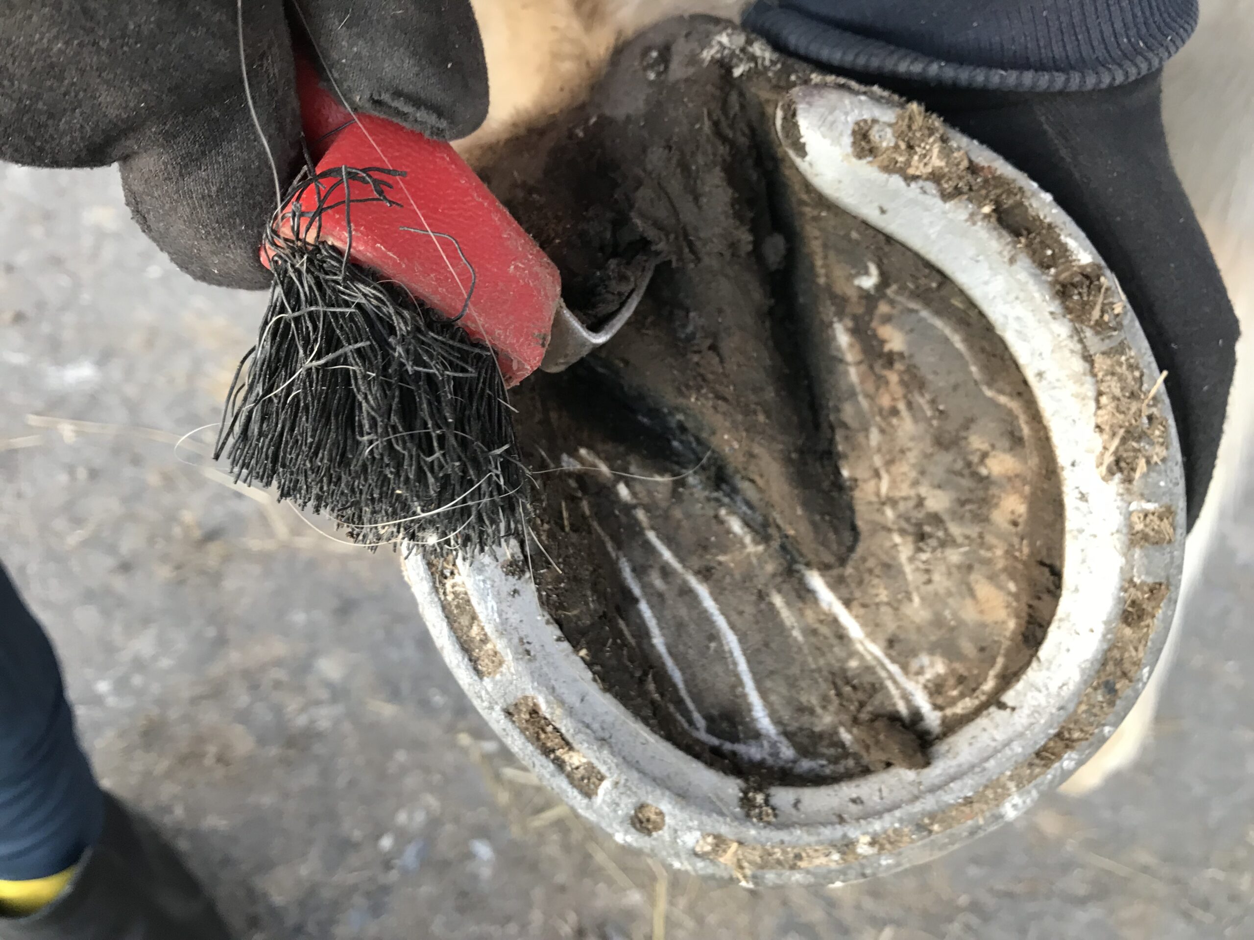 Na chodidle je patrná tzv. „bílá čára“, která může mít ve skutečnosti nažloutlou barvu. Bílá čára je spojnicí mezi stěnou kopyta a chodidlem. Pokud je oblast bílé čáry narušena, dochází k pronikání cizorodých zárodků a oddělování vrstev kopytní stěny, infekce se může rozšířit po celém kopytě a způsobit, že kůň kulhá.