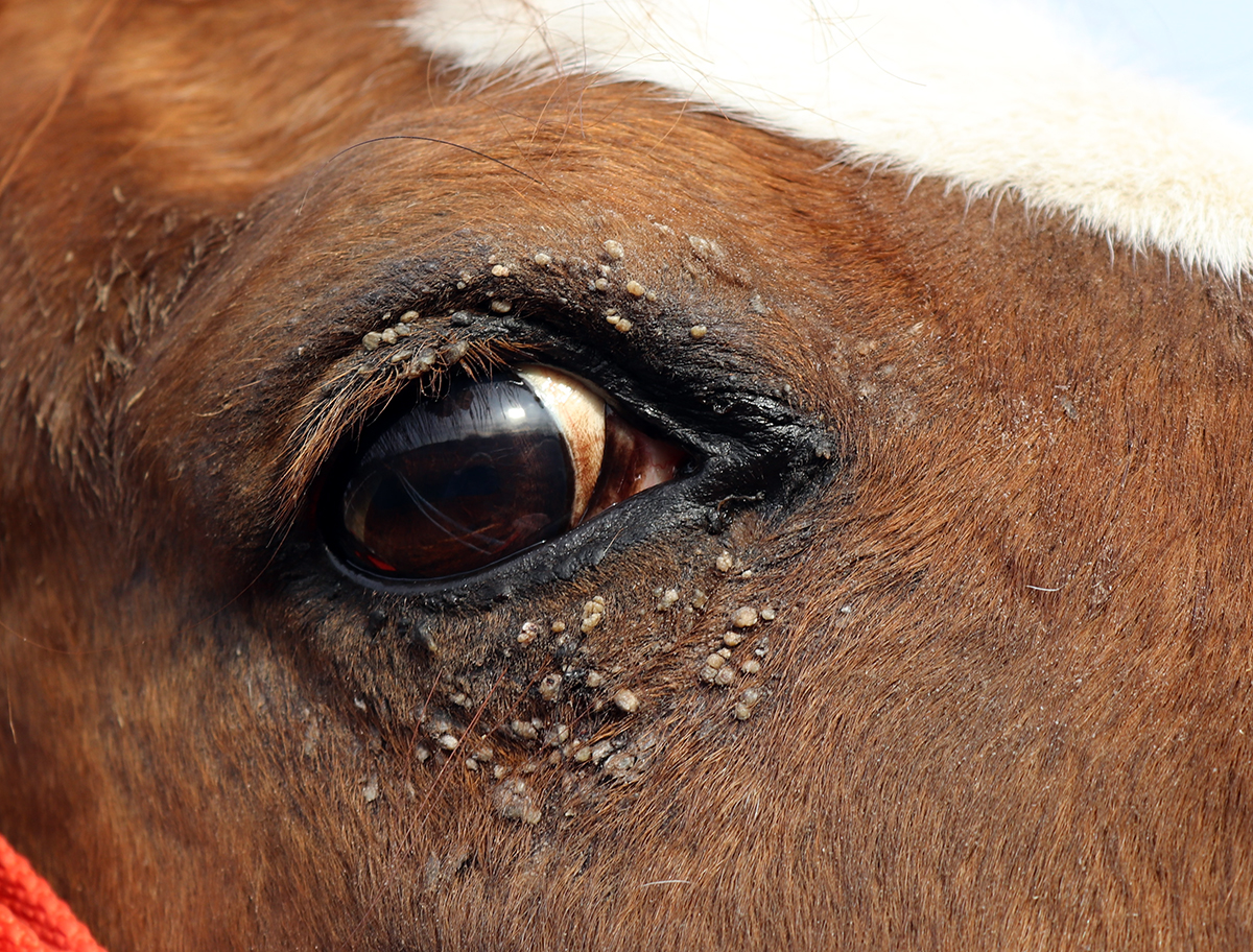Klasické bradavice se vyskytují zejména u mladých koní a typicky se objevují na nozdrách, pyscích nebo kolem očí. Jsou nebolestivé a většinou po několika měsících samovolně mizí. - Povlaky v uších (aural plaques)