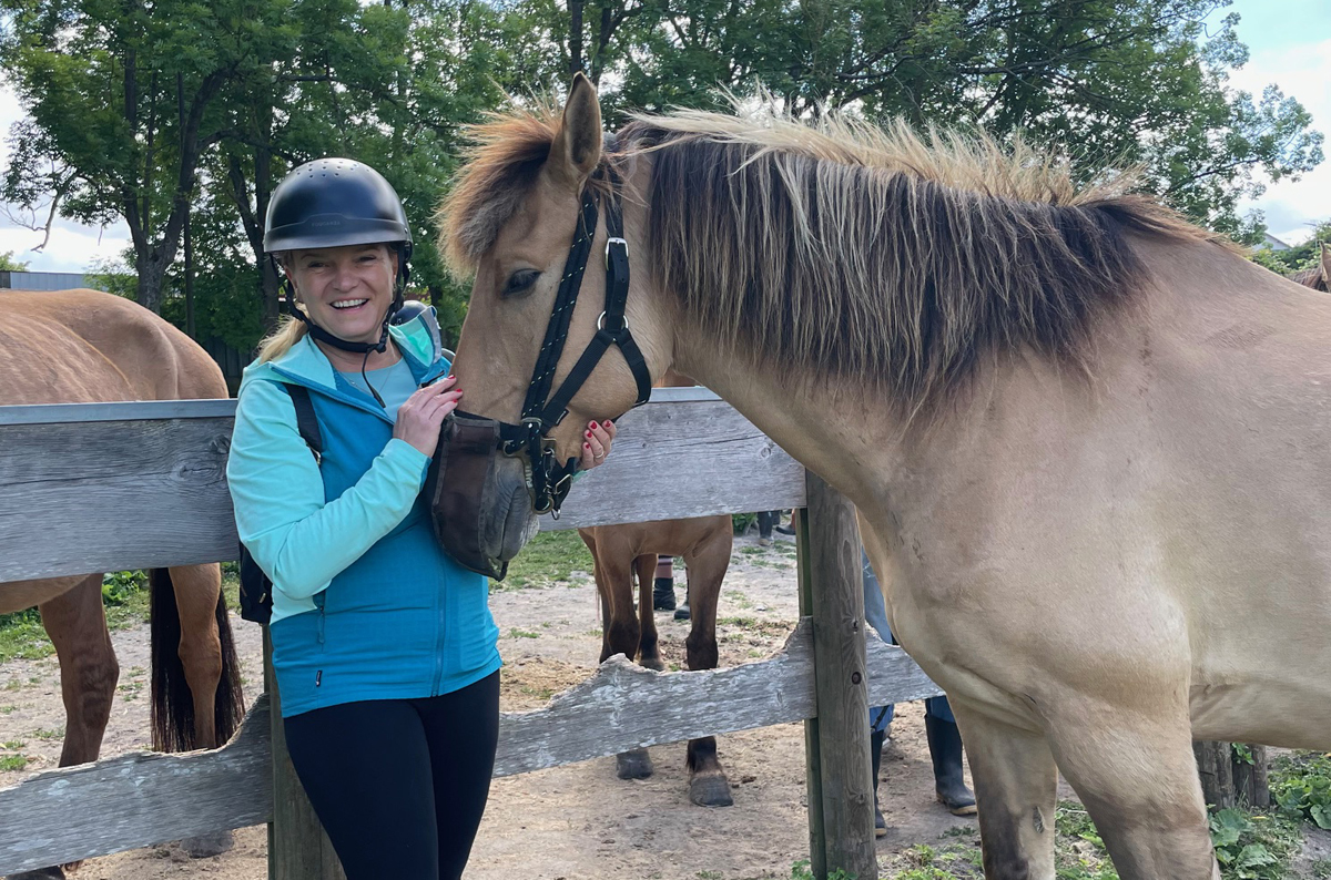 V zaslaných instrukcích jsme se dozvěděli, že máme být v equi centru nejpozději v 9.15 s tím, že na vyjížďku se vyjíždí v 9.30. Kromě nás dvou se dostavilo ještě dalších deset lidí různého stáří, národnosti a evidentně různých jezdeckých zkušeností. Americká důchodkyně nás prosila, zda nemáme „pain killer‘ na její kyčel a já se poměrně zásadně začala obávat o bezpečnost vyjížďky.