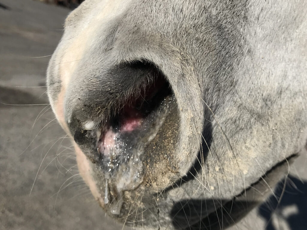 Klinické příznaky se u koní objevují většinou po jedno – až třídenní, výjimečně až desetidenní, inkubační době.