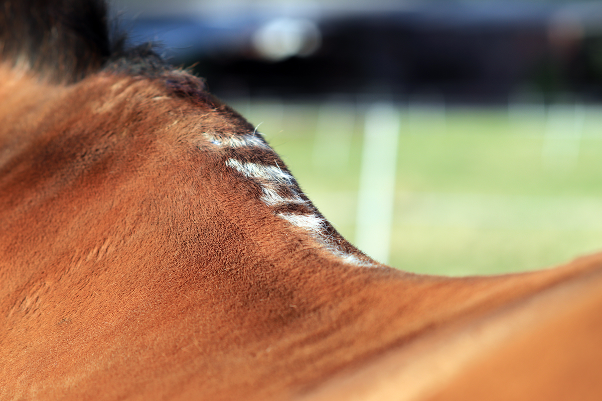Možná si zvýšené citlivosti zpočátku ani nevšimnete. Změněnou reakci přičtete aktuální situaci, spěchu, nové podsedlovce…vždyť to znáte. Časem si ale uvědomíte, že něco je jinak – třeba při dotahování. Neobvyklá reakce bude čím dál silnější nebo prostě pořád stejná silná, ale jiná. Chcete si být jistí. Začněte jednoduchou kontrolou, přejeďte prsty podél páteře od kohoutku po hřbetu až ke kříži, nebojte se přitlačit. Sledujte reakci v podobě záškubu svalu nebo prohnutí ve hřbetu. Nahmatáním hledejte bolavá místa. Pak zkontrolujte sedlo a podsedlovku – jak se kůň chová při položení sedla, zapnutí podbřišníku, postupném utahování podbřišníku po dírkách. Pozorujte, jak kůň reaguje. Natočte a uložte si video, možná se bude hodit. Pokud se kůň po chvíli zahřeje a jde normálně, jde často o funkční citlivost. Čeká vás hledání příčiny. A pak její odstranění.