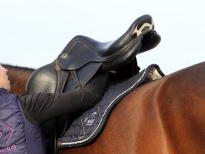 - Špatné nebo nesedící sedlo, nevhodná podsedlová dečka — nerovnoměrný tlak polštářů nebo nevyvážení sedla na hřbetě jsou častou příčinou citlivých zad. Kontrola sedla a podsedlové dečky je vždy prvním krokem.