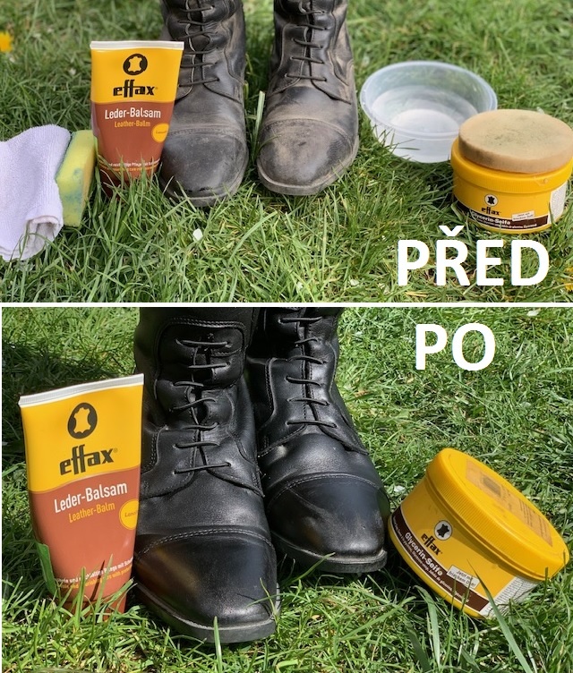 Pro vysoké boty můžeme využít i přípravky, které zároveň dodávají i vysoký lesk, jako například lesk na kůži Effax BootShine, nebo emulze na kůži od Leovetu.