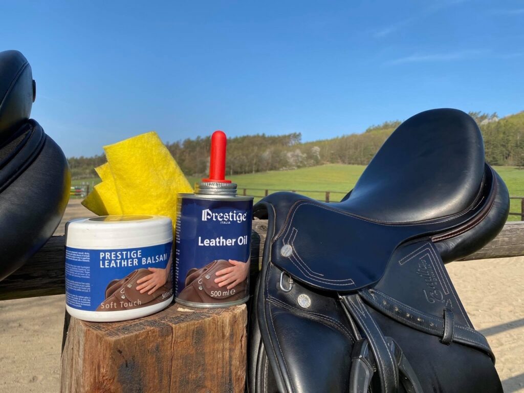 Spodní část sedla je hodně náročná na údržbu. Od koně ji dělí jen podsedlová dečka, kterou kůň často propotí skrz na skrz a je třeba, aby byla správně ošetřená a nedocházelo k popraskání. Na spodní stranu sedla se často používají oleje – perfektně se vsáknou a kůže krásně změkne. Můžete vybírat přímo olej od italského výrobce Prestige, nebo v praktickém balení rovnou se štětcem opět od oblíbeného Effax, případně Leovet.