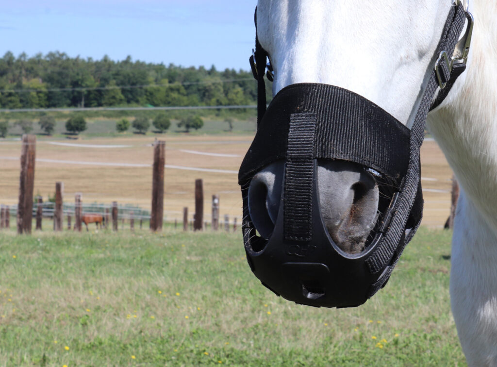 - Ochrana pastviny. Koně s velkým apetitem dokážou malou pastvinu rychle přepást a zničit. S náhubkem se pasou pomaleji, šetrněji a rovnoměrněji. To podporuje regeneraci trávy a lepší kvalitu pastviny i pro ostatní zvířata.