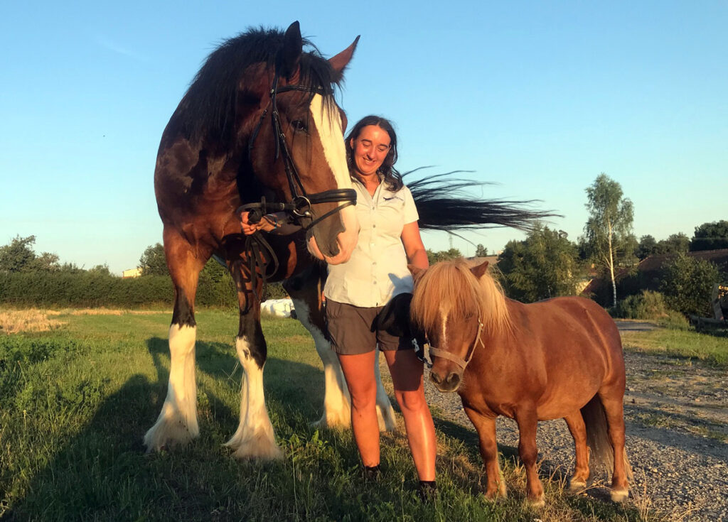 Koho by mohla velikost „shajrů“ děsit, ten uvítá možnost pohladit si naopak jedny z nejmenších koní, tedy poníků, světa. „Jako protiváhu k obrovským shirským koním chováme mini shetlandské pony, jejichž výška v kohoutku nesmí v dospělosti přesáhnout 87 cm,“ vysvětluje Zdeňka Koutná, majitelka stájí a pokračuje: „Máme tady také velkou skupinu klasických shetlandských poníku, a pak také velšské pony všech sekcí a několik teplokrevníků. Děti mají poníky moc rády, dobře se jim s nimi manipuluje, učí se o ně starat a pečovat, a v jejich sedle se cítí bezpečně.“, shrnuje svoje letité poznatky z vedení jezdecké školy.