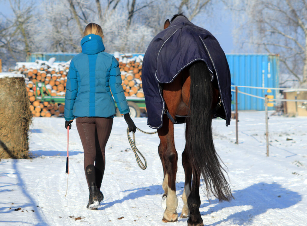 U kopyt ještě zůstaneme, neboť kopyta v zimě vyžadují trochu zvláštní přístup. Asi nejběžnější zimní komplikací je hniloba, která trápí ponejvíc koně s úzkými kopyty. Proto je důležité pravidelně kopyta čistit a kontrolovat jejich stav, abyste podchytili případné známky infekce včas. Další zimní bolístkou jsou podlomy. Podlom se může objevit jako šupinatá či praskající kůže nad korunkovým okrajem nebo ve spěnce, noha oteče, hřeje a bolí. Podlomy je důležité řešit hned v zárodku, aby se předešlo komplikacím.