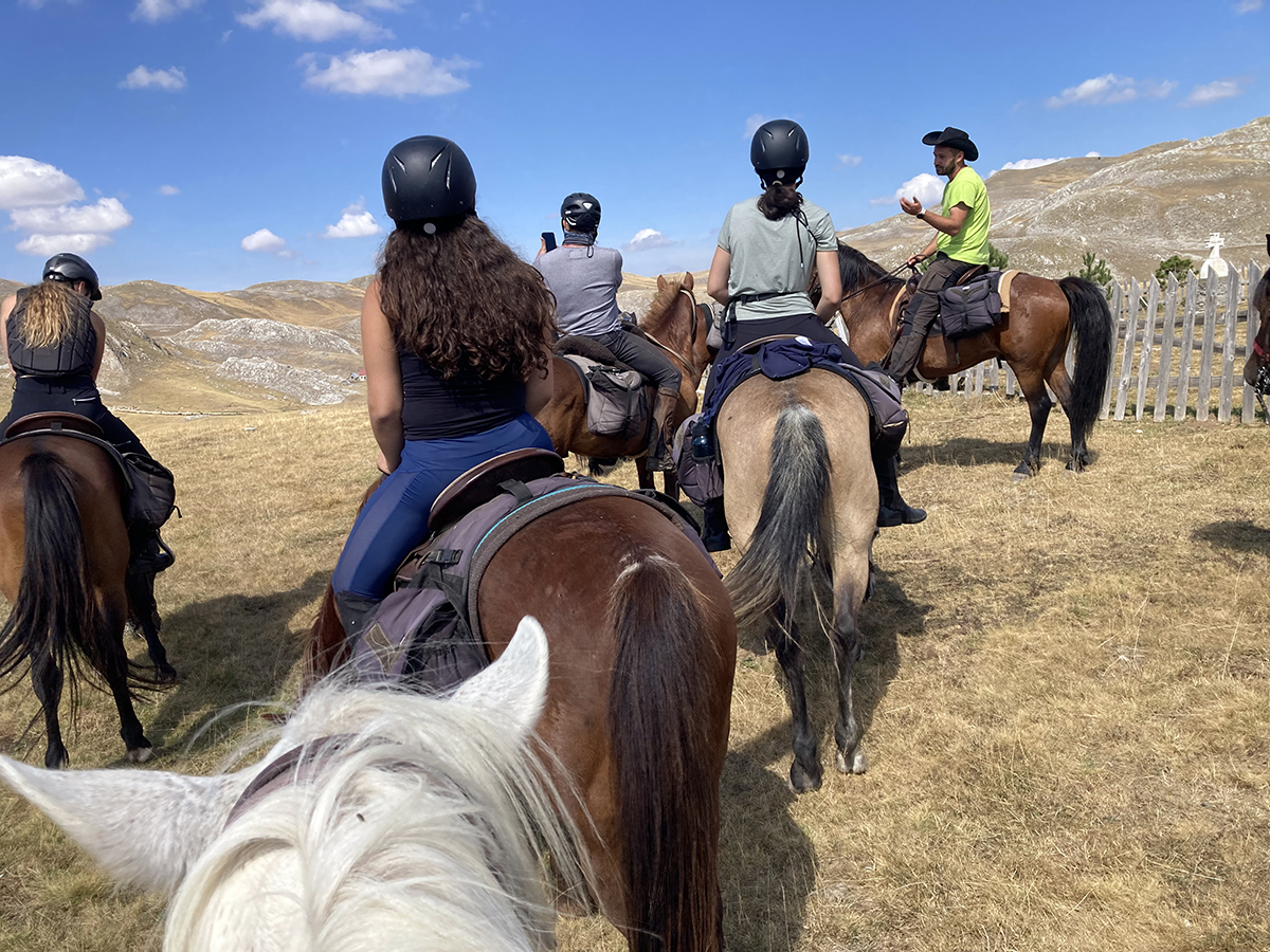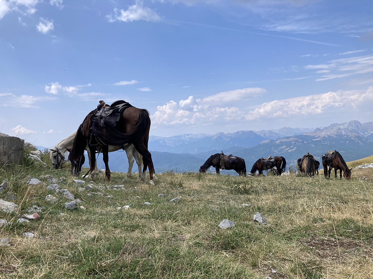 Další katuň, další vřelé uvítání, další nocleh. A ráno do sedla, rychle se blížíme k pohoří Durmitor. Vlastně celý den se pohybujeme po náhorní plošině ve výšce kolem 1500 až 1600 metrů, nekonečné louky přímo vybízí ke cvalu. Noc strávíme v katuni s výhledem na masiv Durmitoru. Tady se už blížíme k civilizaci. Ráno ještě naposled nasedláme a procváláme po loukách kolem jezer. Díky Zakane!